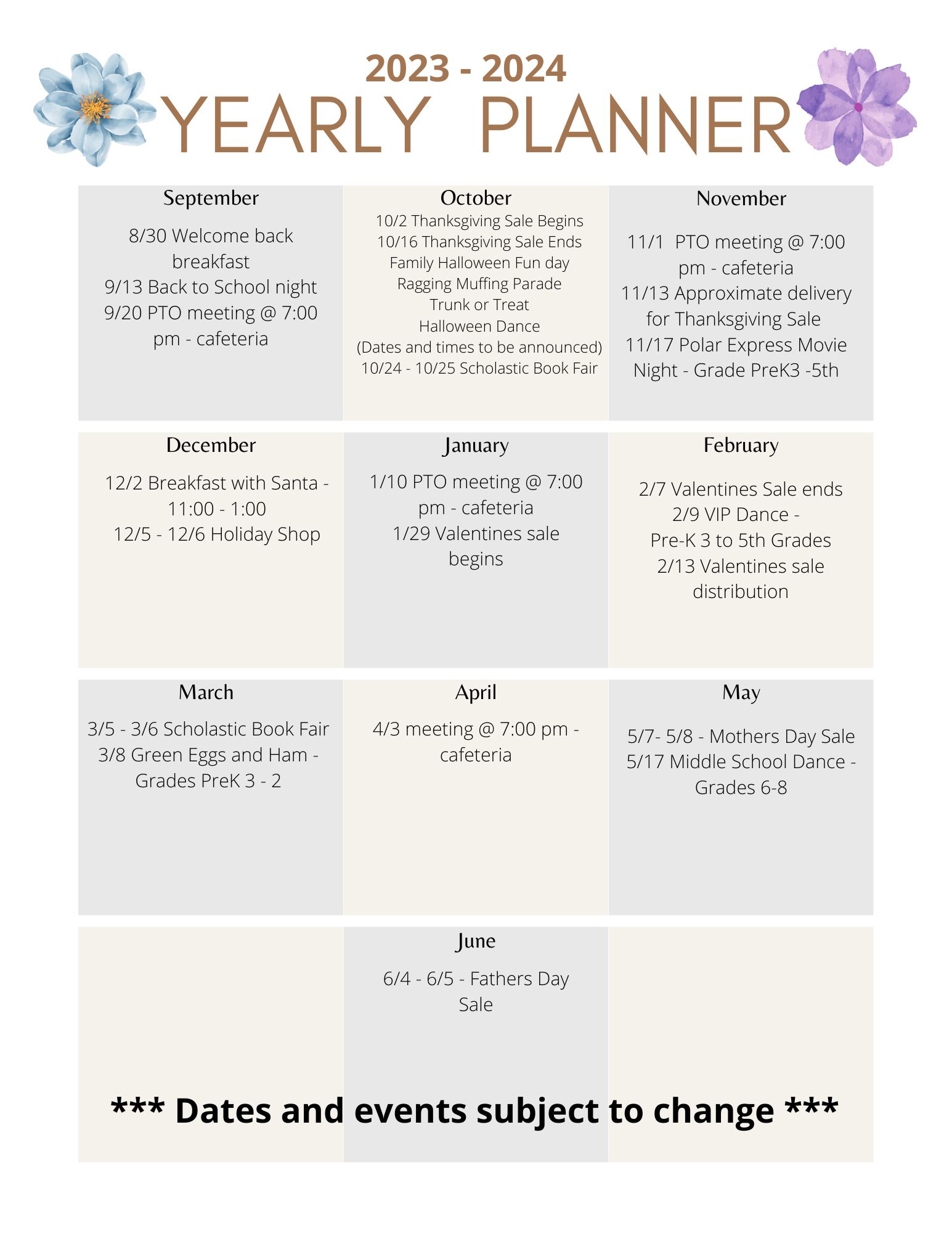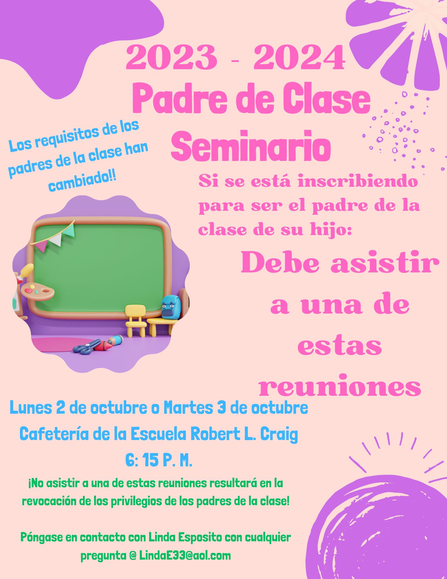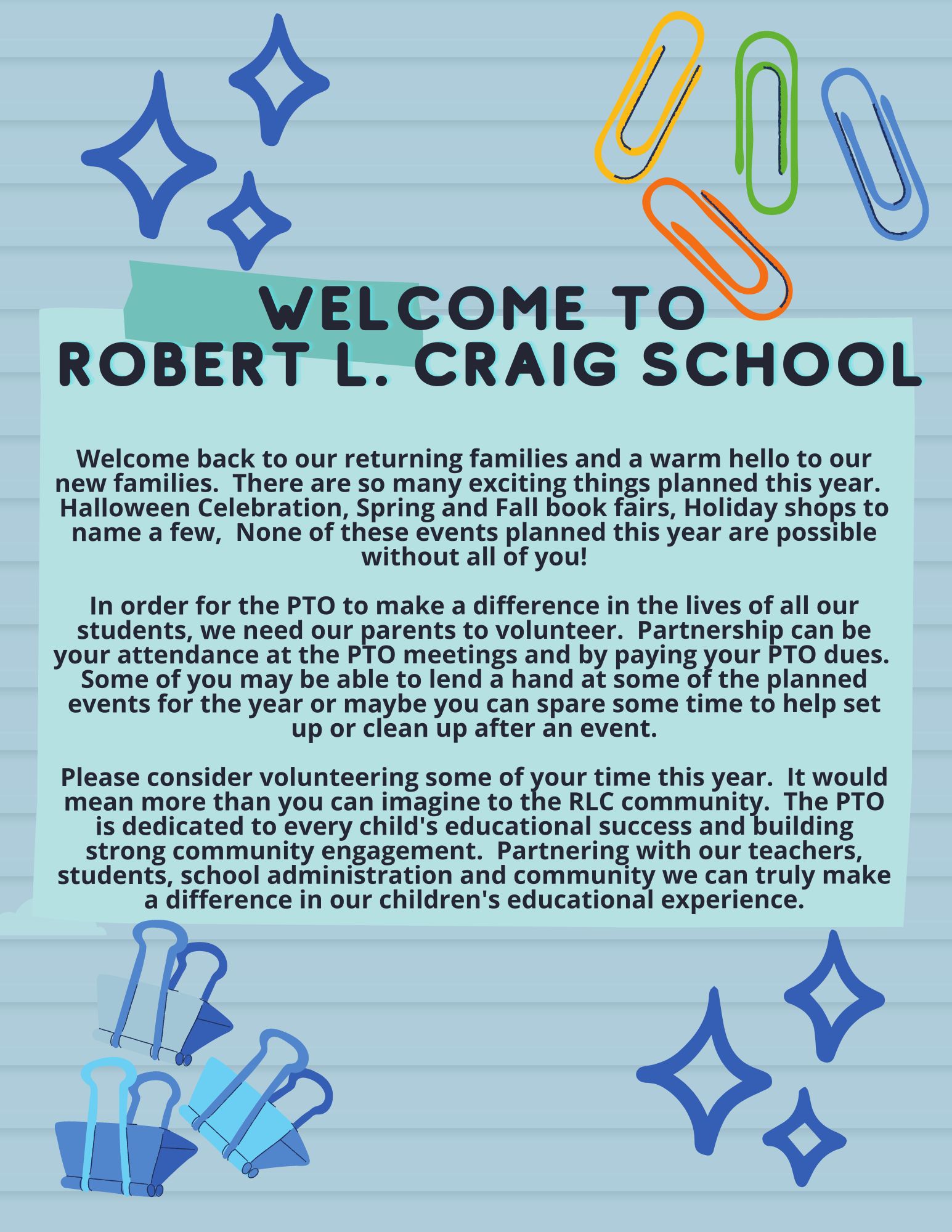 Our first PTO meeting in the cafeteria will be on Wednesday, September 21st at 7PM. Nuestra primera reunión del PTO en la cafetería será el miércoles 21 de septiembre a las 7 PM.